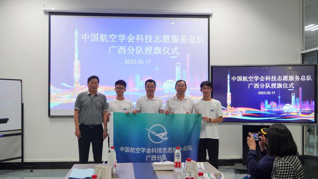 2023-05best365官网举行中国航空学会科技志愿服务总队广西分队授旗仪式