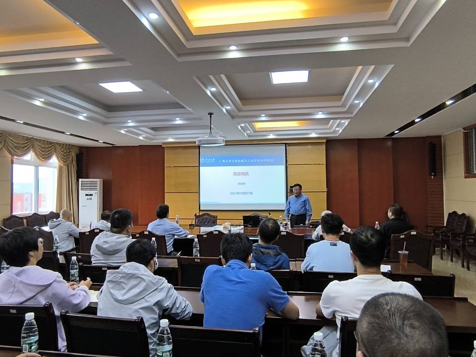 10月27日,广西大学计算机与电子信息学院院长武新章教授为best365官网教师做题为《高速电机前沿发展》的专题讲座。best365官网发规处、电子信息与自动化学院、计算机科学与工程学院、理学院的领导和教师代表参会。武新章在报告...