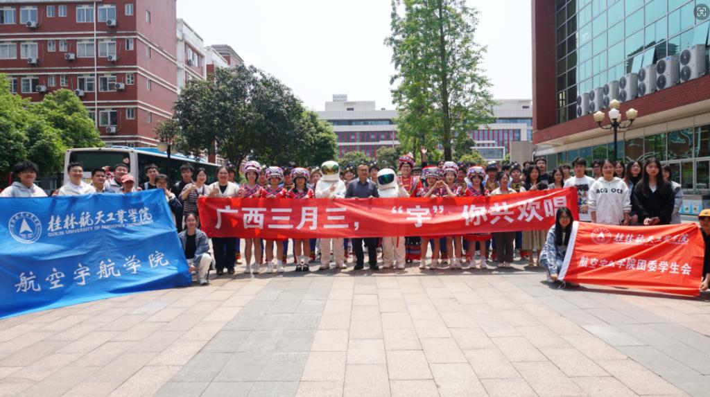 4月9日中午,航空宇航学院团委在南校区天宫楼门前开展了“广西三月三,‘宇’你共欢唱”主题快闪活动。活动现场,来自航空宇航学院的学生们身着民族服装,以嘹亮的山歌吸引了所有人的注意,身着宇航服的宇航员们...