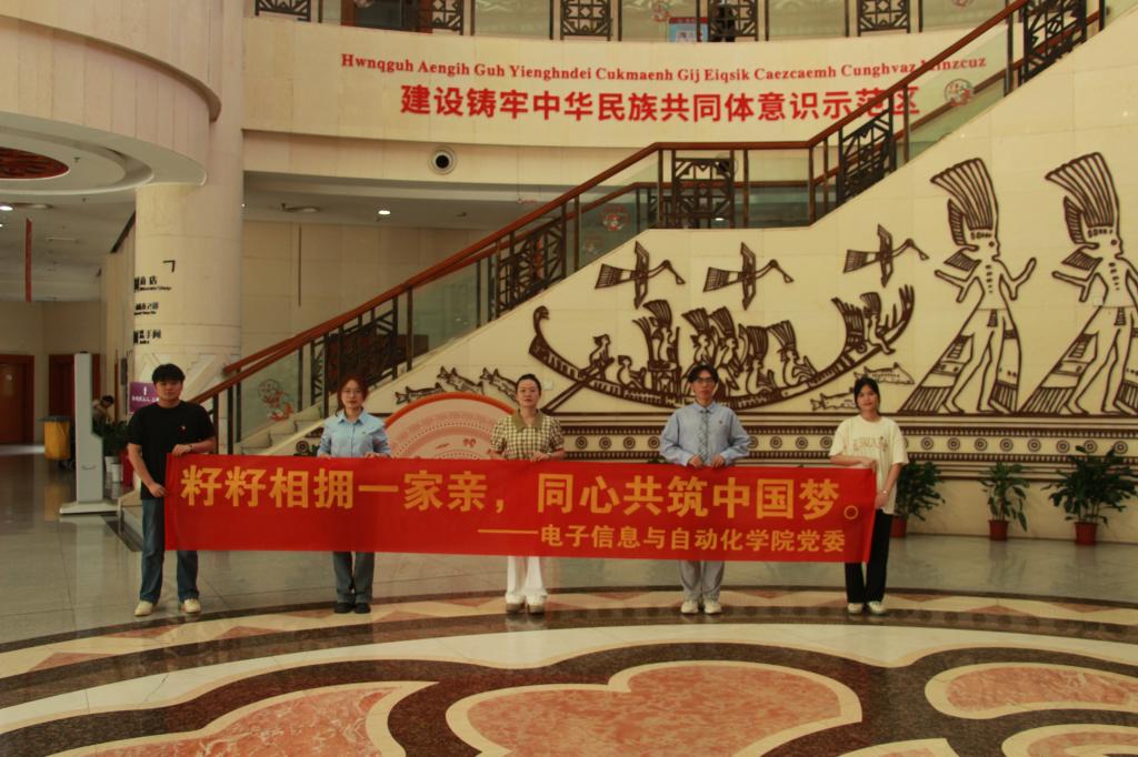 4月19-20日,电子信息与自动化学院党委组织师生党员赴南宁开展“籽籽相拥一家亲,同心共筑中国梦”主题党日活动。首站,师生党员来到了广西民族博物馆,参观了铜鼓文化展厅、广西民族文化陈列展厅。壮、瑶、苗、...