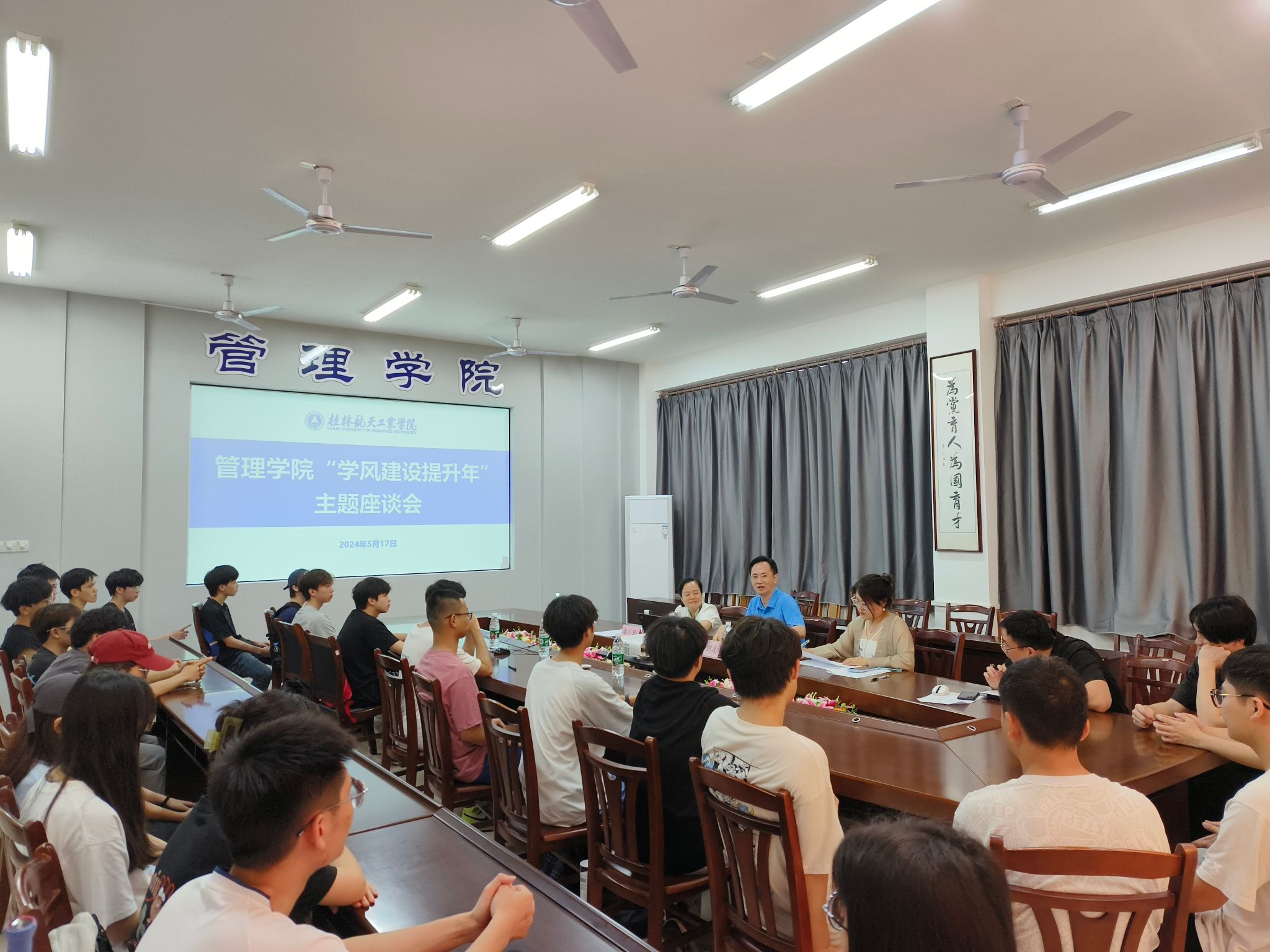 为进一步推进学风建设,提升人才培养质量,5月17日,管理学院召开“学风建设提升年”座谈会。会上,学院主要负责人与学生代表谈心交流,勉励大家要端正态度,切实增强学习的内在动力;要遵守制度,按时参加早晚自...