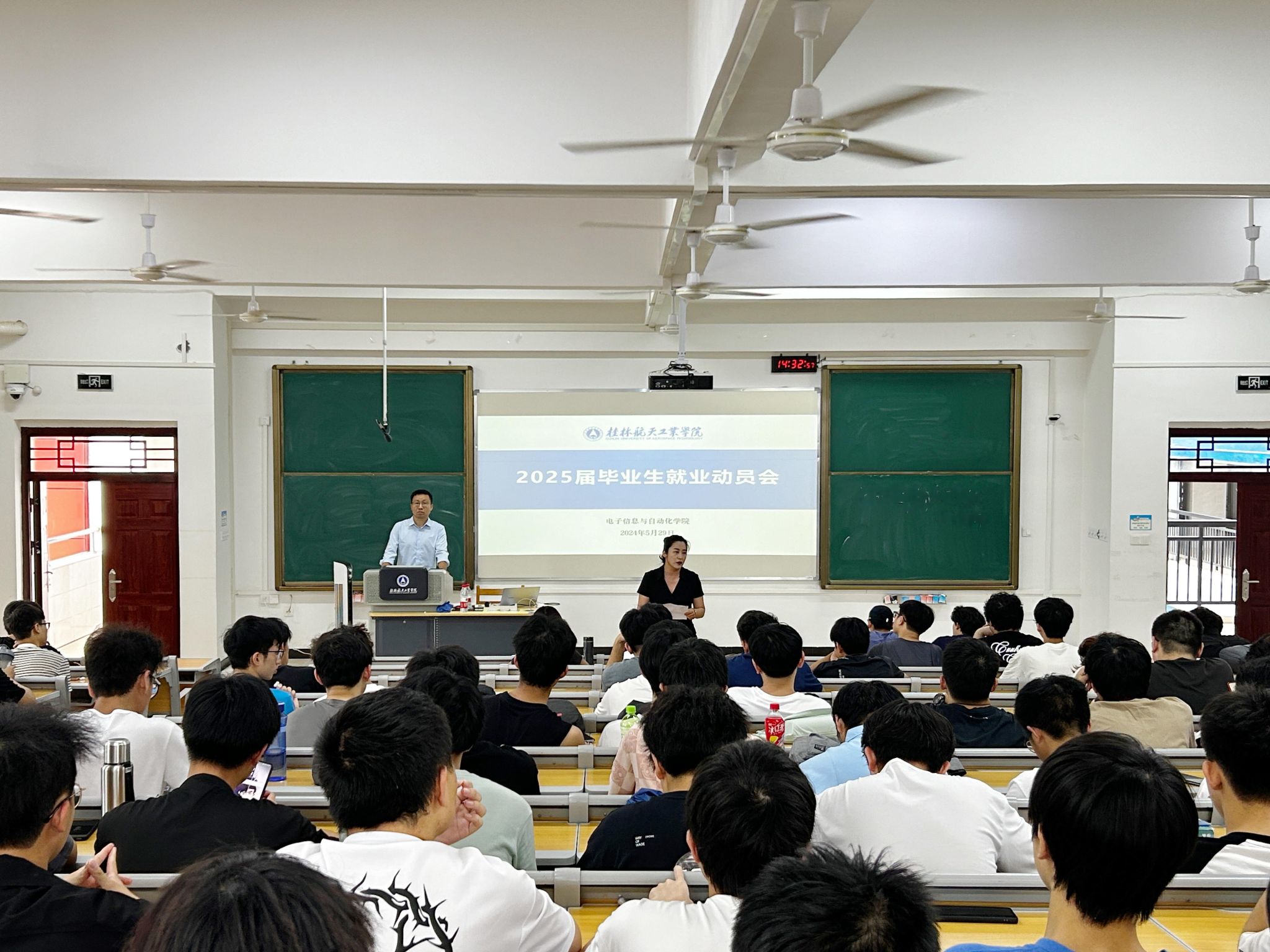 为引导学生客观认识当前就业形势、树立正确奋斗目标、找到未来发展方向,5月29日,电子信息与自动化学院在探天楼B402教室召开2025届毕业生就业动员会。学院党委副书记、团委书记、毕业班辅导员老师出席本次会议。...