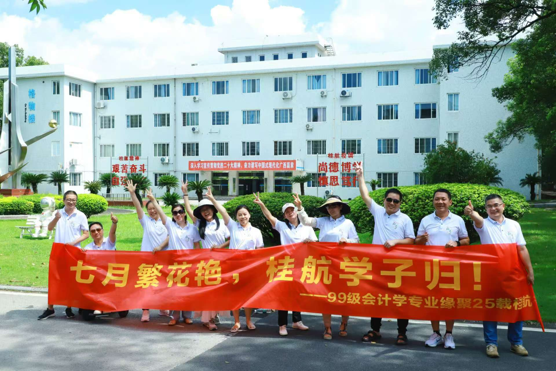 炎炎暑期,校园里洋溢着浓厚的忆校情怀。99级会计专业、01级数控技术及应用等专业的校友们带着对母校的热爱与思念之情齐聚一堂,开展了一系列毕业纪念活动,共同回顾难忘的在校时光。校友们在校园里或结伴而行,...