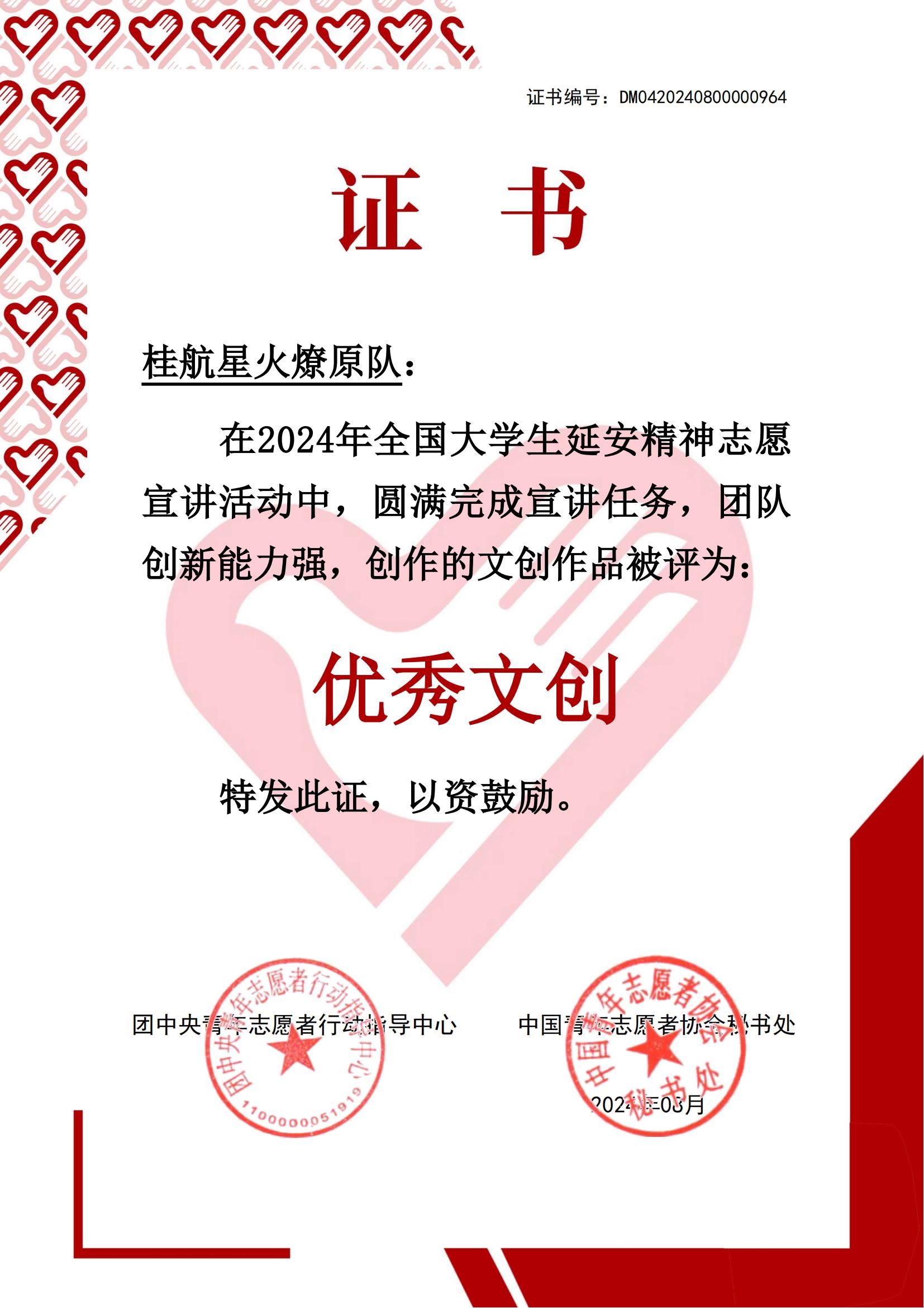 best365官网星火燎原队申请并成功入选2024年全国大学生延安精神志愿宣讲团,5-7月,在全国1000支大学生志愿宣讲队伍中,桂航星火燎原队圆满完成了宣讲任务,团队创作完成的文创产品被评为全国100名“优秀文创”。桂航星...