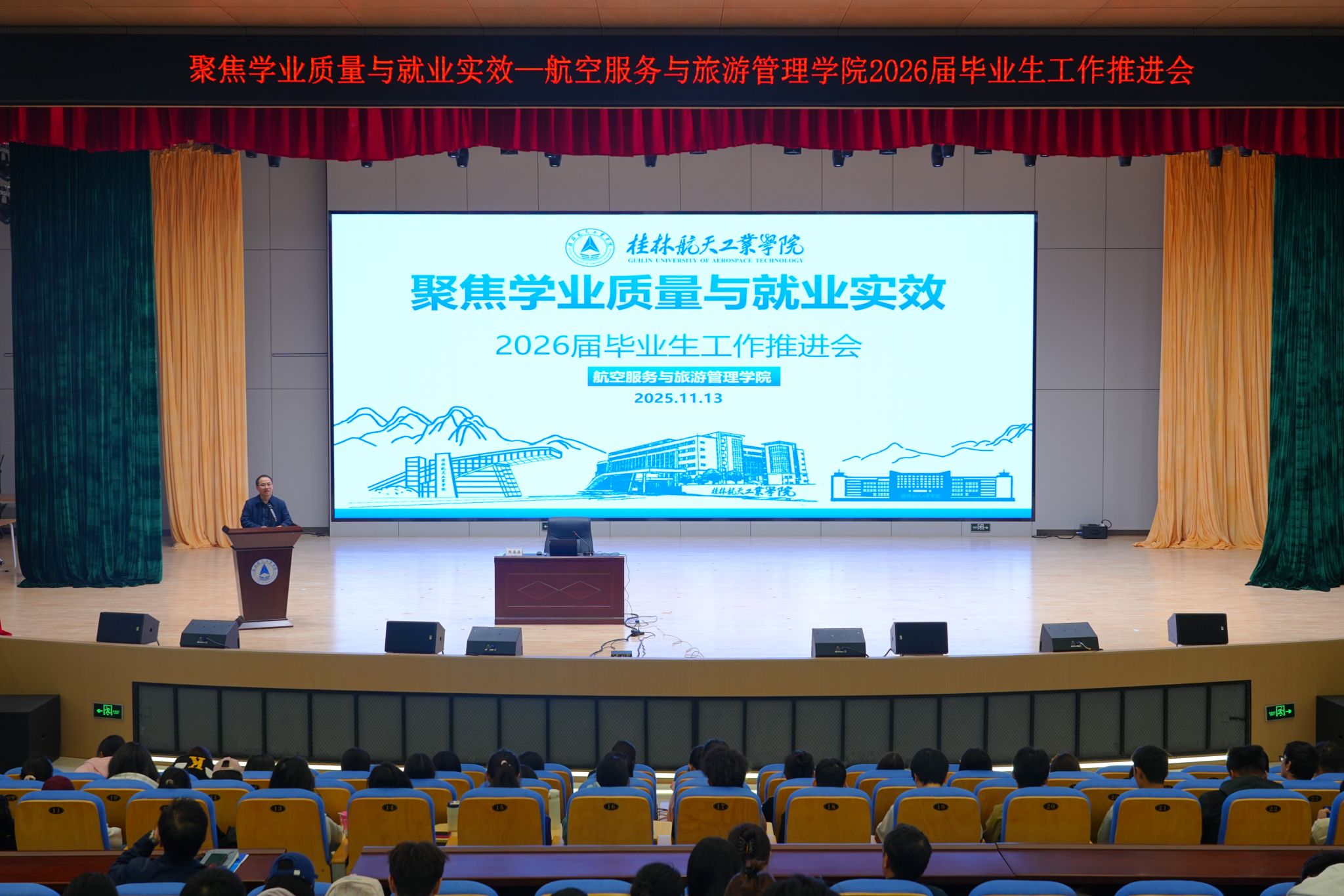 11月13日,航空服务与旅游管理学院在问天楼报告厅召开2026届毕业生学业布置会暨就业工作推进会。学院领导班子、毕业班辅导员及全体2026届毕业生参会。会议聚焦学业质量提升与就业实效推进,通过“学业指导+就业赋...