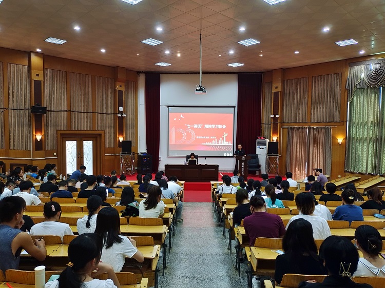 9月17日下午,管理学院邀请马克思主义学院玉素萍教授作《“七一”讲话精神学习体会》的专题辅导报告。学院全体教师、学生党员、入党积极分子参加报告会。