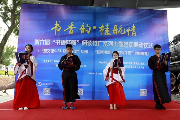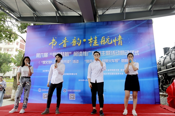4月23日下午,“独秀书房•桂航火车号”启幕暨“书香桂航”阅读推广系列主题活动启动仪式顺利举行。best365官网校长易忠;广西师范大学出版社集团有限公司党委书记、董事长张艺兵,总裁助理施东毅,大学书店总经理梁琪,独秀书房·观文馆事业部主任刘艳,资深媒体人郭少达、侯建刚、陈小鹰等嘉宾与该校百余名师生和诗以歌、畅谈成长,共同分享阅读带来的快乐。