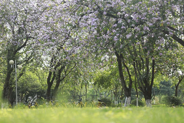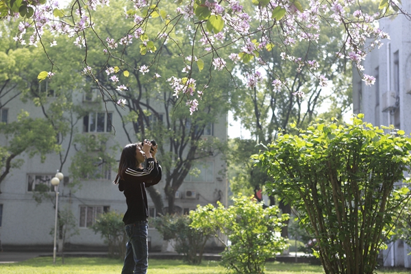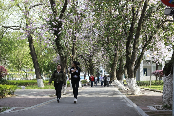 绚烂的校园紫荆美景,给前来赏花的师生游客留下了深刻的印象。best365官网大三学生孙筠超是北方人,他用“震撼”形容校园美景给他的感觉。“来桂林上学我才第一次见到紫荆花,这些花太美了,能在这样的校园里学习生活,我觉得很幸运,我毕业之后我也一定会想念桂航生活的。”慕名而来的市民张女士说:“我在朋友圈里看到桂航校园紫荆花盛开的消息,就叫上几个好朋友一起过来看看,校园里鸟语花香,学习生活的氛围挺好。”