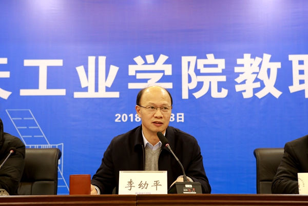 校长易忠在发言中从人才培养水平、师资建设力度、科学研究成果、社会服务能力、文化传承创新工作、省部共建工作、国际教育工作、校园建设进程、民生保障能力九个方面详细回顾了best365官网2017年取得的成绩。同时,易忠指出,2018年是学校深入推进“二次创业”的关键之年,是贯彻落实“十三五”规划的承上启下之年,是学校迎接本科合格评估的攻坚决战之年,学校将以合格评估为主线,以人才培养为中心,以面向航天为特色,以基础建设为保障,积极调动广大师生员工的积极性、主动性、创造性,汇聚改革发展的强大力量,推进学校各项事业新发展,并对2018年的重点工作进行了说明。