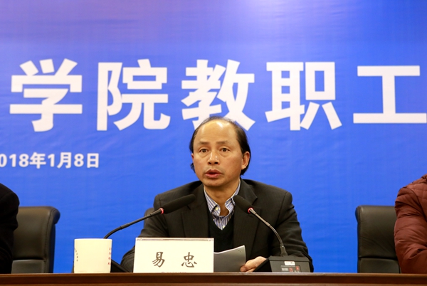 1月8日下午,学校在南校区飞天楼520召开全体教职工大会,校领导李幼平、易忠、黄文韬、郝德温、罗国湘、胡泽民、义祥辉、詹皖生、杨杰、李智出席会议,全体中层领导干部、教职工代表、获奖代表参加会议。会议由党委副书记黄文韬主持。