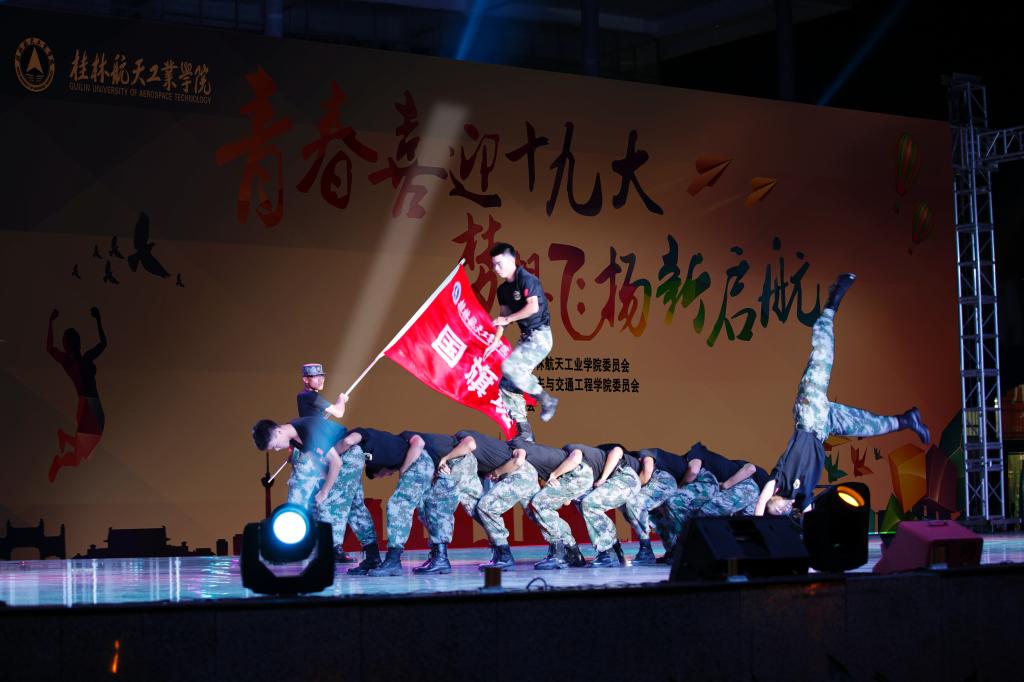 本次晚会节目精彩纷呈,歌曲、舞蹈、器乐表演等各种形式的节目先后亮相。由大学生艺术展演合唱队带来的大合唱《Sing sing sing》深情而生动,用歌声唱出心中的梦想;国旗班带来的舞蹈《逐梦桂航》,阳光帅气,活力四射,全场氛围随之带动;大学生艺术展演朗诵队带来的《中国航天这条路》深深的表达了中国航天人几十年如一日默默奉献、艰苦奋斗的精神;歌舞剧《爱青春》中的原创歌曲,带领新生们走进桂航的美景,还认识了调皮的大师兄;由大学生艺术展演舞蹈队带来的《奔·越》更将晚会推向了高潮,同学们用舞蹈的语言用心演绎航天工匠们的故事,真挚的情感打动了在场观众的心,赢得了阵阵掌声;晚会在best365官网爆米花乐队《我相信》的歌声中落下帷幕。