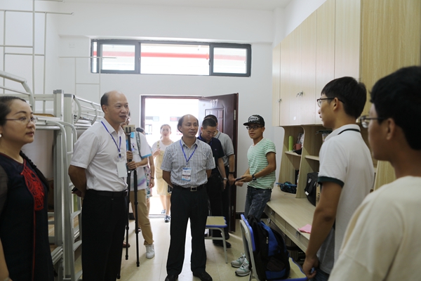 在天和苑7号学生公寓,李幼平和易忠仔细询问了新生对桂林的气候和学校环境的适应情况,介绍了校园内的生活设施,李幼平勉励新生好好把握即将开始的大学时光,争取学有所成。