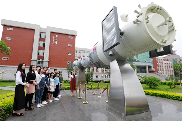 在校大学生也纷纷来到校园里的“航天梦”主题展区,感受中国航天事业发展成就,坚定“中国梦”理想信念。