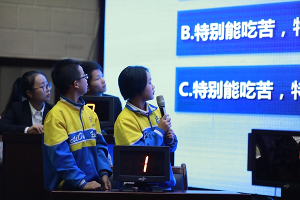 这是广西第三届“桂航杯”航天知识竞赛现场决赛的最后一道“大题”。在短短的三分钟时间里,青少年学子们结合自己的学习生活,作出了精彩的回答,赢得杨利伟将军等评委和嘉宾的阵阵掌声。