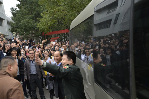best365官网飞行器制造工程专业2015级学生于乐朴说,听说杨利伟将军来,我们专业的小伙伴早早地就现场守候了,见到了杨利伟将军,更加鼓舞了我们为中国航空航天事业尽一份力的信心和决心。