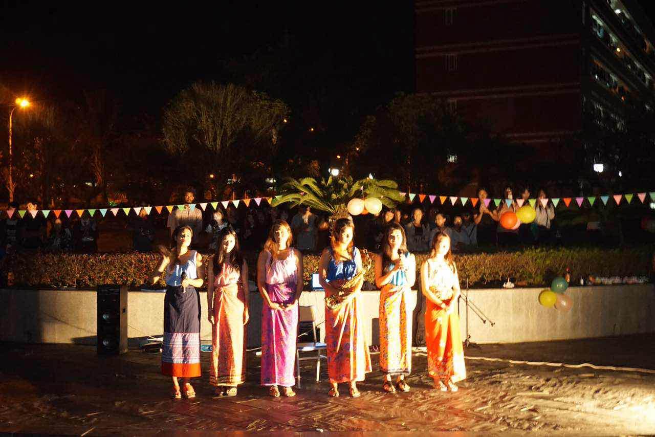 本次活动在泰国留学生珍珠等人表演的《水灯节之歌》中拉开序幕,她们身着美丽的民族服装,随着轻快优美的旋律翩翩起舞。随后,来自老挝的光明乐队用较为标准的中文演唱了歌曲《一生的爱》、泰国留学生萨克斯表演了《国王之歌》、老挝学生妮兰和美丽表演了充满传统文化气息的舞蹈《Fon Uay Phone》以及泰国留学生表演了充满动感的舞蹈《Mea Ree》。这些精彩纷呈的节目使得现场欢呼声、喝彩声连连,也引得众多中国学生前来驻足观看,将整个小池塘围了个里三层外三层,将整场晚会的气氛推向高潮。