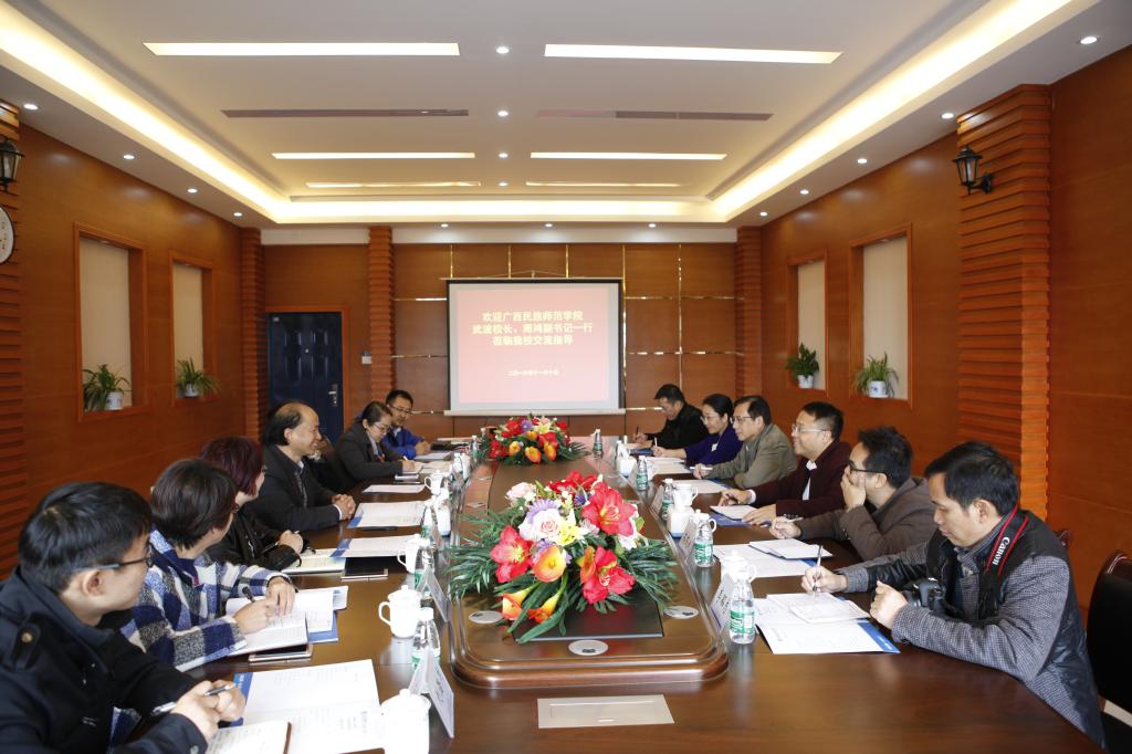 11月10日,广西民族师范学院校长武波、校党委副书记周鸿带队来校交流考察。best365官网校长易忠,副校长杨杰热情接待了来访客人。