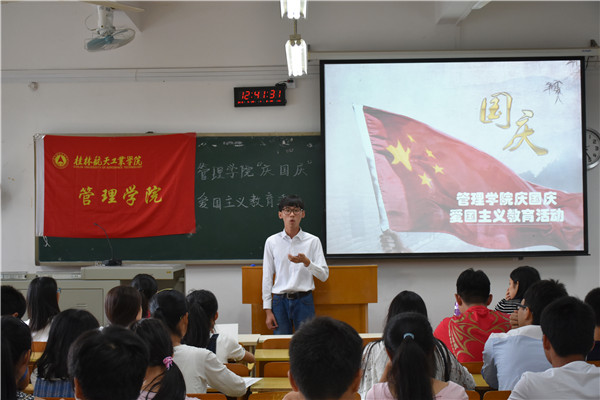 航空旅游学院面向2016级新生所有班级开展演讲、朗诵、歌唱、知识抢答等丰富多样的爱国主义教育文化活动,活动参与率达100%。活动进一步帮助大学新生明确未来目标以及青春使命,从现在开始努力奋斗,自强不息,艰苦奋斗,真正把爱国之志变成报国之行。