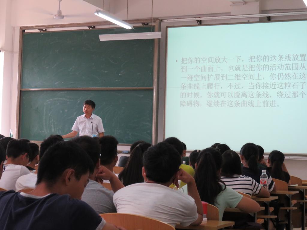 课堂上,黄文韬通过一些案例、图形、谚语和生活中的一些有趣现象来启发和引导学生,让学生感受到数学学科的魅力及应用的广泛性。在成功吸引了学生的学习注意力之后,黄文韬适时引入数值计算和符号计算的讲解,水到渠成,学生一点即通。最后,黄文韬为学生们分享了学好高等数学的一些经验和方法,使学生们受益匪浅。课后,老师们还就高等数学课程的授课技巧、教学方法等进一步展开了交流和探讨。