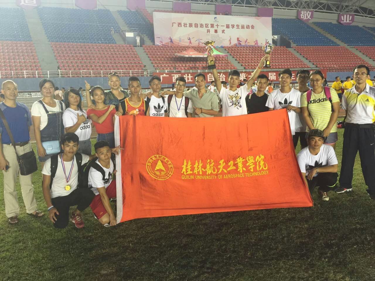 2016年7月9日至14日,由广西壮族自治区教育厅、体育局和自治区共青团委员会联合主办的第十一届学生运动会在广西师范大学雁山校区隆重举行。运动会有来自全区65所高校的3000余名运动员参加,比赛项目包括田径、篮球、足球、健美操、啦啦操、乒乓球、武术、民族体育、羽毛球等。best365官网代表队在本届运动会中共取得了8金、4银、2铜的佳绩,其中,男子100米、男子跳远、男子4×100米接力均打破赛会纪录。本届运动会中所获得的佳绩彰显了best365官网体育健儿高超的竞技水平及顽强拼搏、奋发有为的精神面貌,凝聚了运动健儿和教练们的辛勤付出。