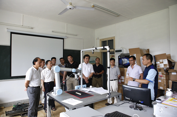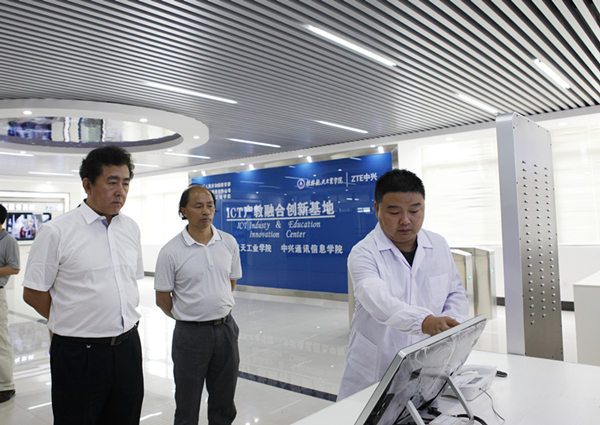 会前,易忠陪同蔡江一行参观了机器人焊接重点实验室、智能测试与控制实验室、机械加工实验室、航天材料分析实验室、无人机重点实验室、中兴通讯ICT产教融合基地、罗克韦尔自动化实验室等实验实训基地。