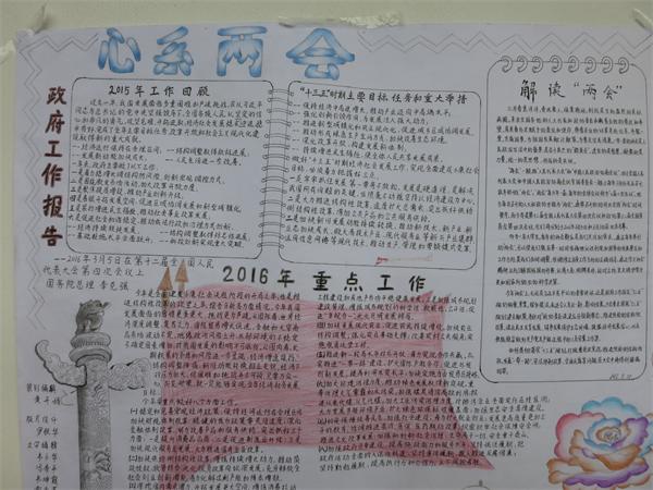 两会是我国政治生活的大事,是建设中国特色社会主义政治的重要内容,是高校思想政治理论课,特别是“毛泽东思想和中国特色社会主义理论体系概论”课必须联系的“实际”。推进两会精神进课堂、开展学习两会精神手抄报比赛已经成为best365官网思想政治理论课的传统特色。