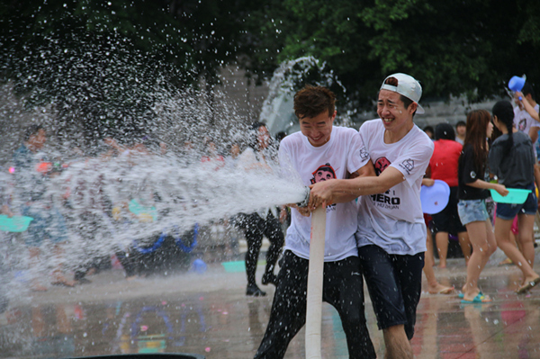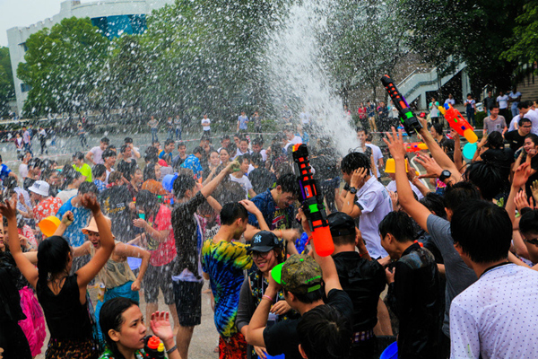副校长杨杰、国际教育交流中心负责人及国际教育教研室的教师代表们参加了拜师礼,老师们将纯洁的水洒在留学生的额头上并送上真挚的祝福,寓意着留学生能怀着一切美好和纯净开始新的一年;随后,一群身穿传统服饰的泰国留学生向大家展示了泰国不同地区的民族舞蹈,拉开了节日的序幕。歌舞表演精彩纷呈,台下欢呼声、掌声此起彼伏。泼水大狂欢环节将活动推向了高潮,同学们用水盆、水瓢、水桶、水枪相互泼洒,顿时广场上水花飞溅,尖叫声、欢呼声随之响起,成了一片欢乐的海洋。留学生们纷纷表示感谢学校的关怀,很开心能在中国庆祝新年、与中国朋友们分享节日的快乐。