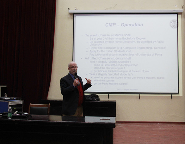 罗延忠出席了项目推介会。会上,Motta教授简要介绍了帕维亚大学的办学历史、特色专业、自身的研究领域,及两校的本升硕项目运作模式等。