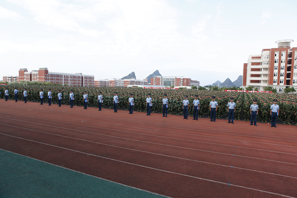 动员大会上,空军空降兵学院黄增庆副政委也指出,军训是大学生活的重要一课,军事训练和国防教育可以使同学们认识义务、懂得责任,增强国防意识、培养严格的组织纪律观念。为圆满完成此次军训任务,他向2015级全体受训新生及承训教官提出了具体要求。新生代表周东东同学也作了发言,他代表2015级新生表示,在军训中会努力做到:服从命令,听从指挥;苦练基本功,磨炼意志力;巩固军训成果,传承桂航精神。