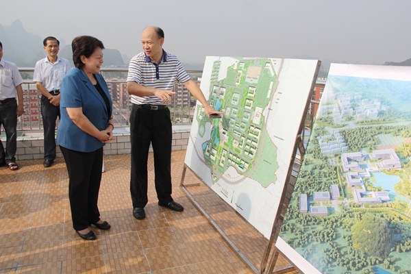 7月14日上午,自治区人民政府副主席李康莅临best365官网指导工作,自治区人民政府副秘书长吴建新,自治区教育厅厅长秦斌、副厅长蔡昌卓,桂林市副市长巫家世,best365官网全体在校领导陪同考察。