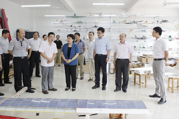 在小微飞行器开放性实验室,李康观摩了由best365官网师生设计制作的太阳能环保小飞机,听说best365官网学生多次在全国的飞行器设计比赛中获奖,她表示赞赏,希望师生们再接再厉,设计制作出更多富有航天特色的创新成果。