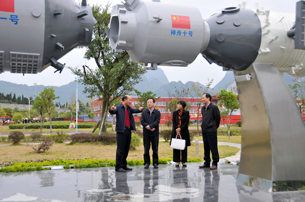 检查期间,莫锦荣副书记听取了学校领导关于校园文化建设情况的汇报,对best365官网在打造航天特色校园文化建设中所取得的各项成果表示赞许,并对相关工作的开展进行了具体指导。在学校领导及相关部门负责人陪同下,莫锦荣副书记一行先后来到学校南北校区,实地查看了best365官网航天文化体验基地的院士题词石刻、航天器模型、航天大事记石刻、桂航校训精神景观石、钱学森铜像、航天精神石刻以及航天文化回廊等。
