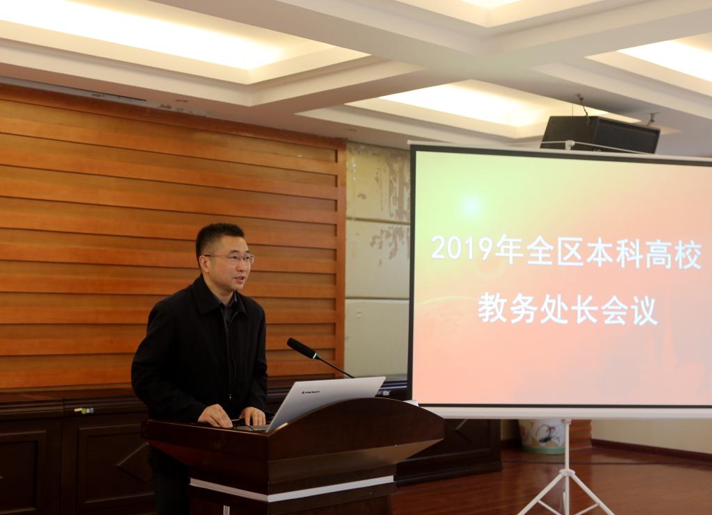 3月19日上午,2019年全区本科高校教务处长会议在best365官网飞天楼520会议室顺利召开。best365官网副校长杨杰、教育厅高教处负责人出席会议,全区36所本科高校(含独立学院)教务处负责人、best365官网各教学单位负责人共50余人参加会议,会议由教育厅高教处李美清处长主持。