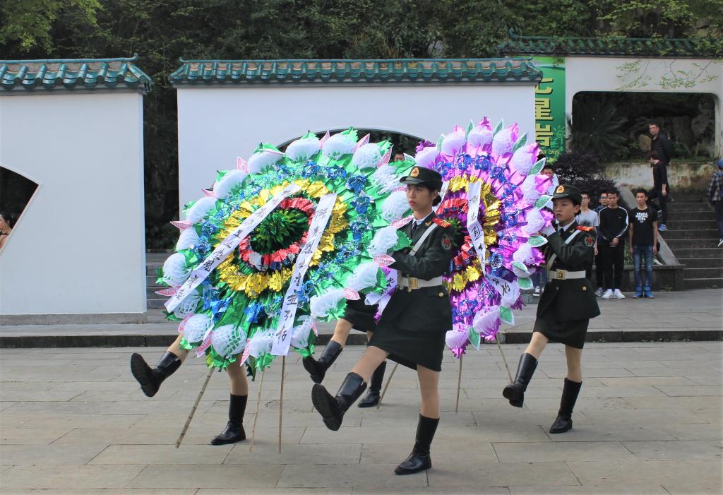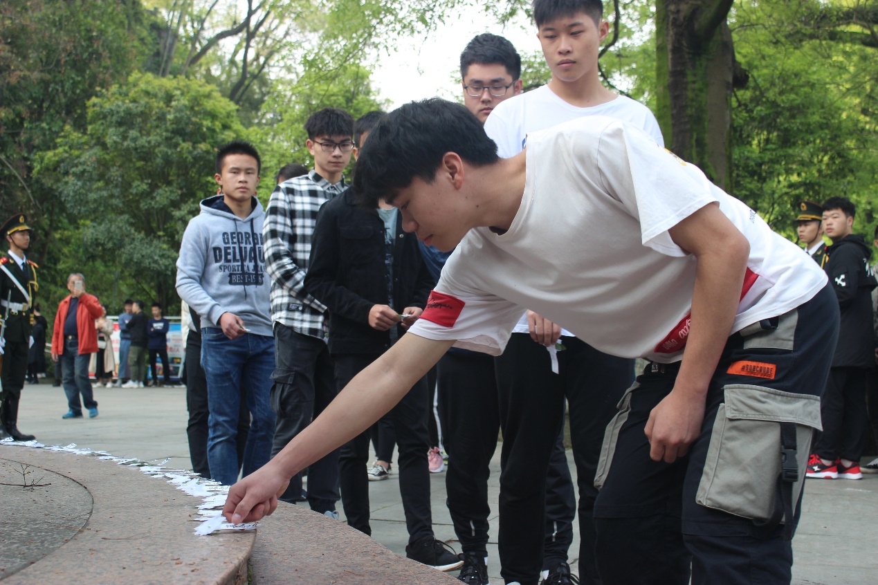在陈光烈士纪念塔面前,全体人员为烈士献小白花,同学们深深鞠躬并表达对陈光烈士的崇敬之情。在活动结束后,各代表在横幅上留言对未来的希冀。