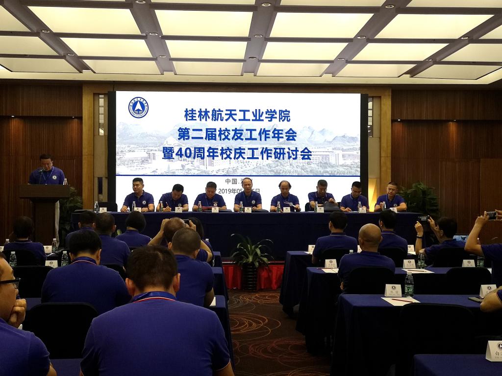 会上,易忠向祖国各地的全体桂航校友发布母校40周年校庆总体工作方案,重点介绍了七个一校庆系列活动,即:举办一个隆重简朴的庆典大会;举办一系列由院士、航天员及知名专家学者主讲的学术报告会;举办一系列展示彰显航天特色与情怀、办学成果与社会贡献的图片展及彰显师生、校友综合能力的作品展;举办一次航天应用技术大学联盟会议;举办一次学校理事会会议;举办一系列校友返校活动;举办一台彰显学校历史变迁及发展成就的办学成果展演。他还从校庆的前期准备、组织实施、校友活动的策划等方面向校友展示了学校办好40华诞庆典的信心与决心。
