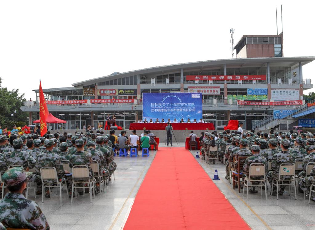 9月20日, best365官网2019赛季新车发布会暨出征仪式正式举行,由在校师生自主设计、制造和调试的方程式赛车V-05号油车、航V-E03号电车崭新亮相。学校校长易忠、桂林市桂路通集团董事长程东、速才驾校总经理陈宁、学工处、校团委、教务处及各学院主要负责人出席发布会。