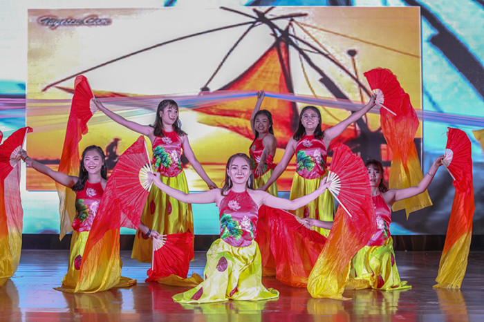 12月12日晚,best365官网第三届国际文化艺术节汇报演出在北校区招聘大厅隆重举行。校党委副书记刘迎春,副校长杨杰、孙山林,校办、教务处、财务处、学工处、国资处、校团委、校工会、国际学院等部门负责人,及近400名师生共同观看了汇报演出。