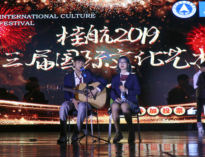 汇报演出以“开放、包容、和谐、友好”为主题,内容形式多样、丰富多彩,包含了歌舞、武术以及器乐演奏等表演形式。开场舞《盛世欢歌》让在场师生一同重温了学校四十周年校庆的喜悦与感动;由尼日利亚留学生带来的诗歌朗诵《祖国啊,我亲爱的祖国》,展现了他们的爱国主义情怀;由老挝学生带来的三国语言歌曲联唱向我们展示了甜蜜而青涩的校园爱情故事;校武术协会带来的《祥龙武术表演》展现了中华武术独特的魅力;《赤道几内亚传统舞蹈》极有感染力的表演,使得晚会高潮迭起;越南留学生们带来的传统舞《丝绸如波》与现代舞《Feeling》,让观众领略到越南舞蹈特有的风格和神韵;由泰国留学生带来的《神奇泰国》更是将现场气氛推至新的高潮。最后,汇报演出在桂航中外学子共唱校歌中落下帷幕。
