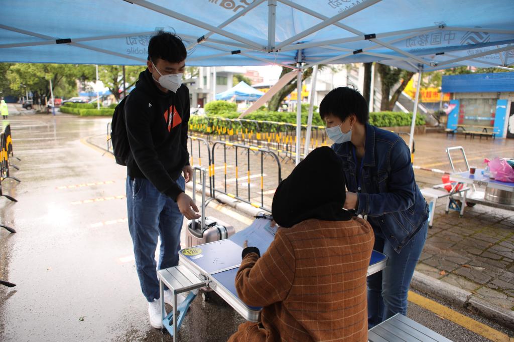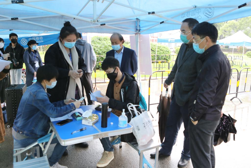 除了专人、专车点对点接送学生返校的措施外,学校设置了返校学生入校的固定通道,保卫处、后勤管理处建立了周密的安全监测程序,严格管控人员进出。返校学生进校门时再次经过消毒、体温测验、身份核验、健康码核查等严格程序。各学院辅导员在校门口设接待点,严格登记学生个人信息,再逐个分流送入宿舍区,确保返校过程形成严格的闭环。