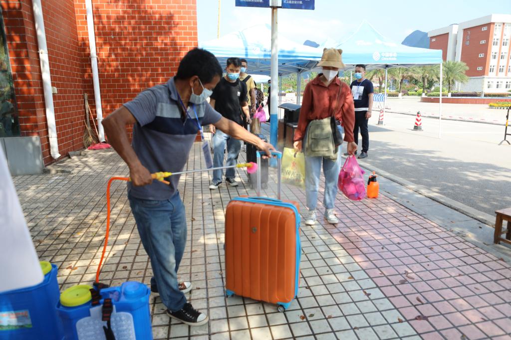 据悉,学校此次分别在机场、火车站、汽车站等处设置接送站点,安排专人、专线,点对点接送学生返校。在南北校区的大门口设置了学生返校通道,学校工作人员严格执行扫码核验、行李消毒、测量体温等流程,设立“党员志愿岗”,引导学生按照指定的单向路线井然有序地进入校园,并向返校学生们发放防疫宣传资料和防护物资,指导学生进行科学防护,用贴心、热情的态度迎接每一位同学的顺利返校。