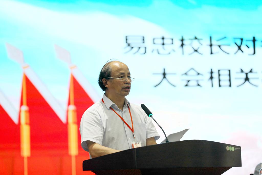 校长易忠代表学校作了题为《坚定信心 提振精神 攻坚克难 狠抓落实 为打赢本科教学工作合格评估总攻战而努力奋斗》的工作报告。《报告》从迎评促建、教学质量、科学研究、文化传承、开放办学五个方面回顾了2019年和今年以来的学校工作,并对2020年学校的重点工作进行了部署,对代表讨论审议大会材料的情况作了说明。