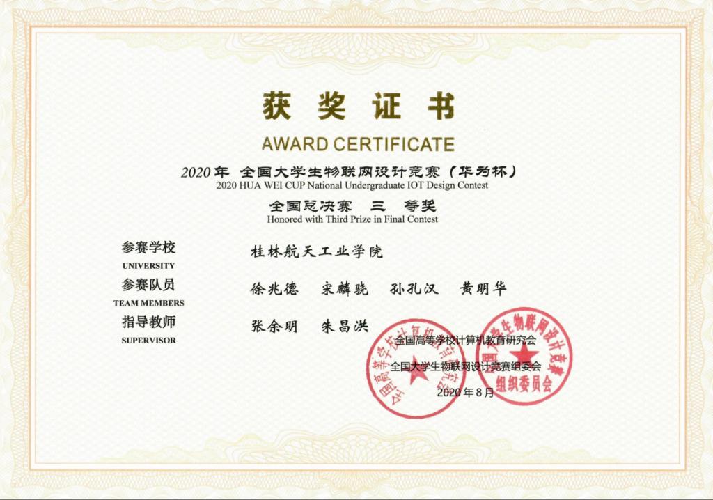 9月28日,“2020年全国大学生物联网设计竞赛(华为杯)全国总决赛”如期开赛,best365官网两支获奖团队在全国总决赛中表现优异,为best365官网再创佳绩。其中,获奖团队名称1:基于物联网的智慧云晾衣系统,荣获全国二等奖;获奖团队名称2:基于物联网技术的智慧云教室管理系统,荣获全国三等奖。全国决赛前,best365官网荣获了“2020年全国大学生物联网设计竞赛(华为杯)华中及西南赛区分区决赛”特等奖,并经过5个分赛区的线上预赛和决赛,最终参与了总决赛。
