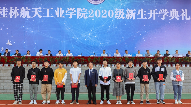 典礼上,校领导及校友代表分别为2020级新生奖学金获得者颁奖,为新生代表佩戴桂航校徽,欢迎2020级新生成为桂航的新力量。