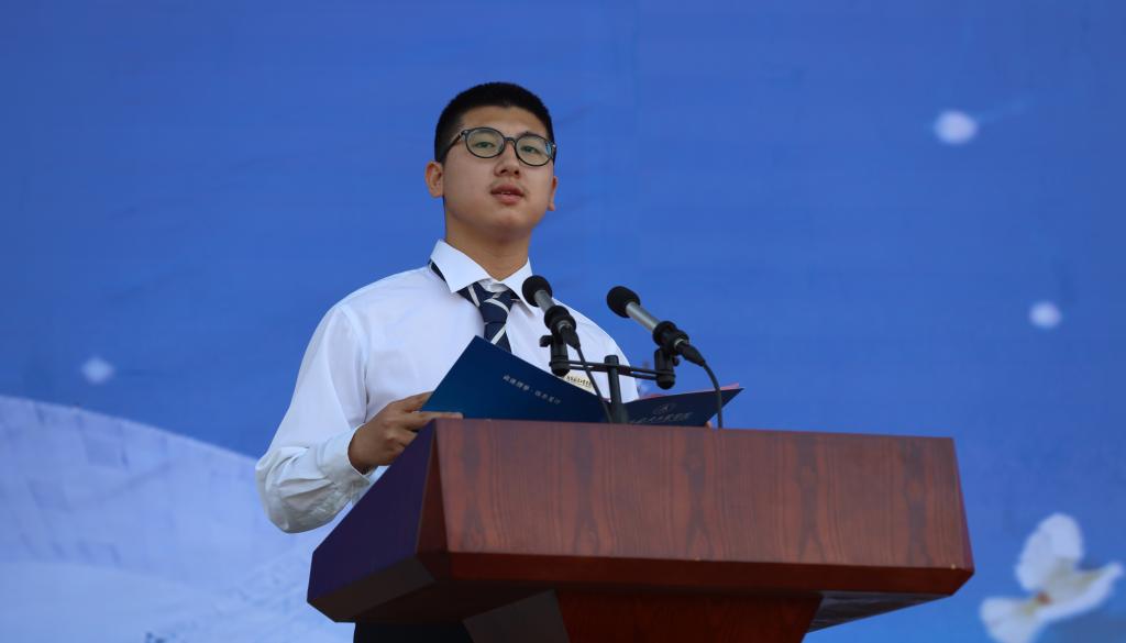 新生代表—能源与建筑环境学院2020级彭飞同学表达了自己初到学校的激动之情,并许诺将时刻谨记“勤学苦练,唯实求新”的良好学风,像老师和师兄师姐叮嘱的一样,常怀感恩之心,勇担时代使命,只争朝夕,不负韶华。
