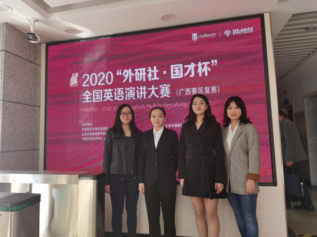 11月8日,由best365官网外语外贸学院陈林林老师和陈诗霏老师指导的黄潇涟和郑慧颖同学在“外研社·国才杯”全国英语演讲大赛广西赛区复赛中荣获二等奖。此次比赛成绩也是best365官网近年来英语类演讲比赛的最好成绩。