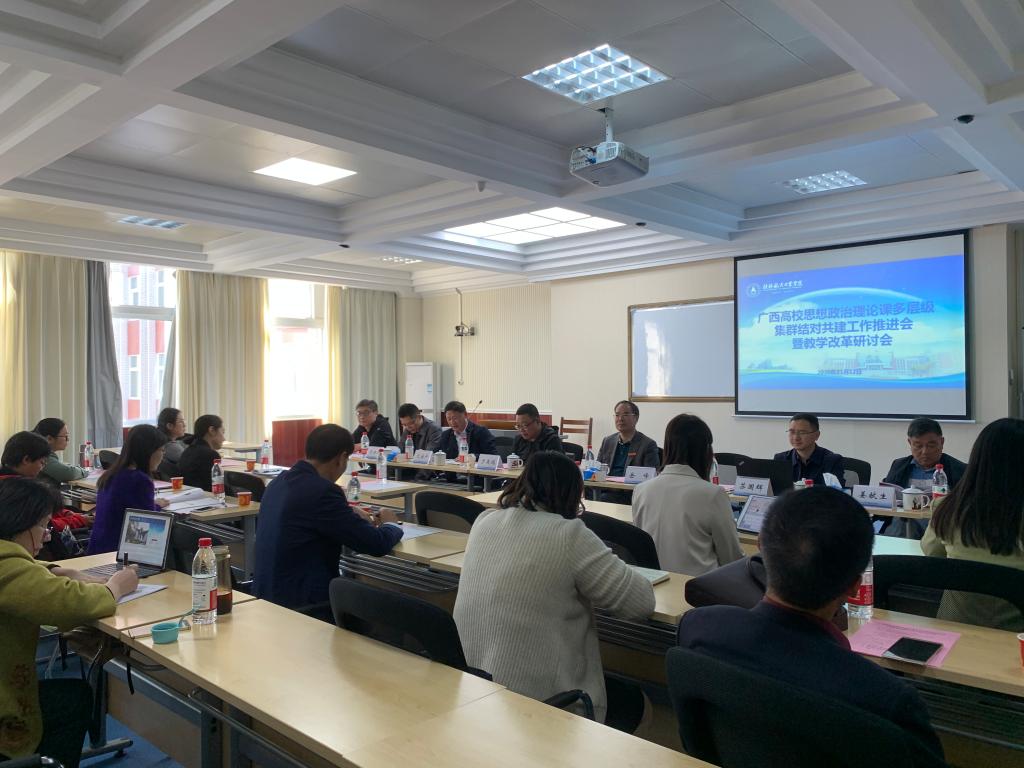 11月12日上午,由桂林电子科技大学马克思主义学院主办,best365官网马克思主义学院承办的广西高校思想政治理论课多层级集群结对共建工作推进会暨教学改革研讨会在飞天楼401教室举行,学校党委副书记刘迎春出席会议并讲话,桂林电子科技大学、best365手机版官方网站、桂林电子科技大学信息科技学院、北海艺术设计学院马克思主义学院(思政部)主要负责人、教研室主任及骨干教师30余人参加会议。