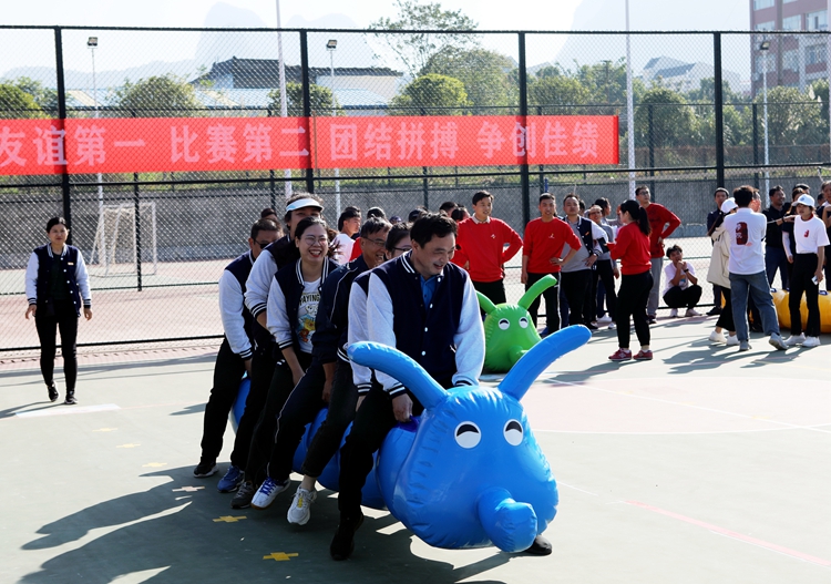 为培养教职工团结协作、顽强拼搏的精神,丰富教职工体育文化生活,11月12日上午,由校体委、校工会主办,第一分工会协办的教职工趣味运动会于南校区塑胶篮球场欢乐召开。各分工会共计二十个参赛队参与此次趣味运动会。
