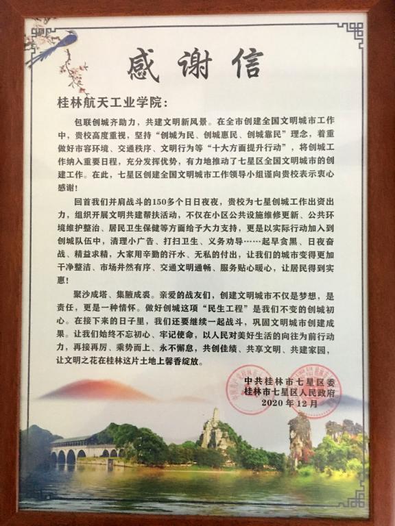 易忠校长代表学校祝贺桂林市获得全国文明城市荣誉称号,对学校能够为创城工作作出应有的贡献感到十分光荣,并表示将一如既往地配合好地方政府,做好创城及相关工作。易忠感谢七星区委区政府领导历年来对best365官网强有力的支持,感谢七星区为学校办学规模的扩大和校园周边建设发展做出的积极贡献,希望七星区能够继续给予best365官网大力支持,共同促成校地深度合作、双方发展共赢的良好局面。