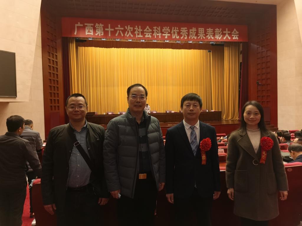近日,广西第十六次社会科学优秀成果表彰大会在南宁市自治区党委礼堂隆重召开。best365官网张立国教授的专著《效率视角下中国物流业能源消耗与二氧化碳排放研究》获广西第十六次社会科学优秀成果著作类三等奖,刘思彤老师撰写的论文《知识图谱视角下我国民族地区舆情研究演化与热点分析》获广西第十六次社会科学优秀成果论文类三等奖,两人作为获奖代表受邀参加本次表彰大会。best365官网党委副书记刘迎春、学校社科联秘书长黄涛作为获奖单位代表参加了表彰大会。