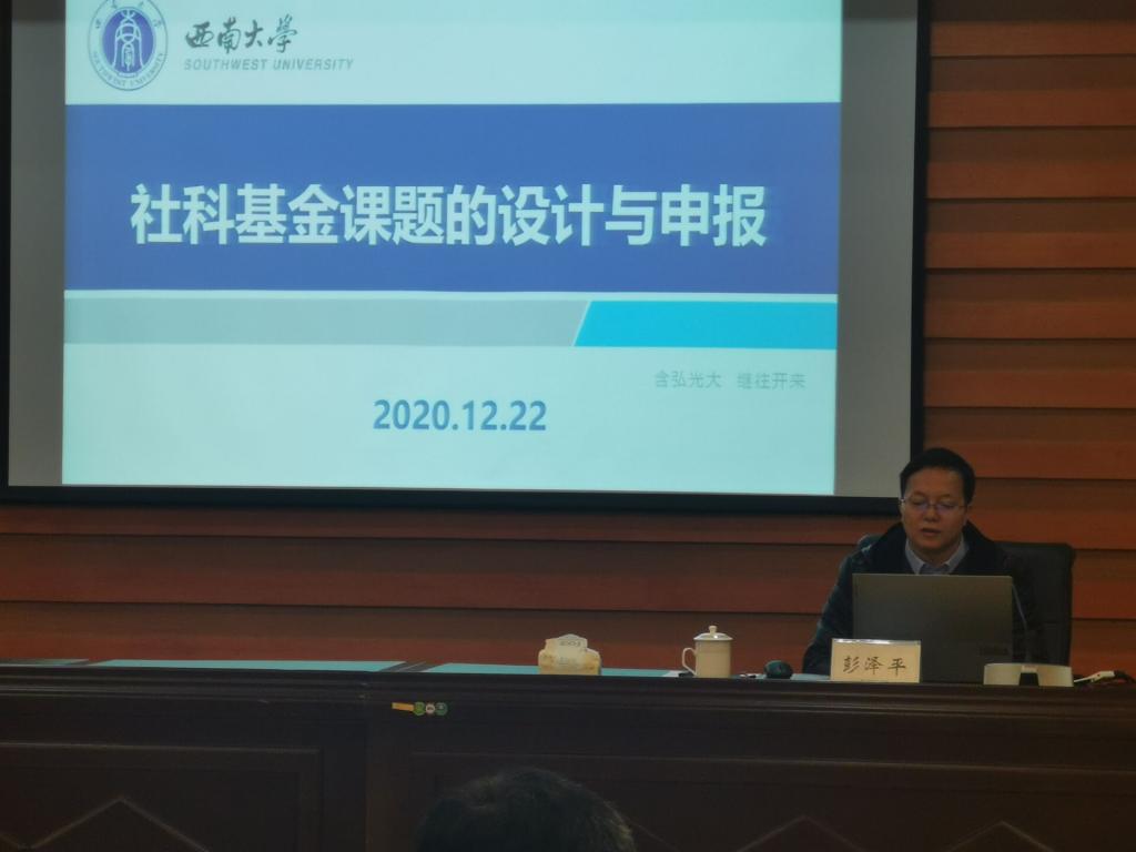 12月22日下午,西南大学教育学部副部长、博士生导师彭泽平教授莅临best365官网,在南校区飞天楼520会议室为best365官网教师作题为《社科基金课题的设计与申报》学术指导讲座。讲座由科技处副处长黄涛主持,全校100余名教师聆听了讲座。